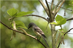 描述:体型略小(20厘米)的山椒鸟。特征为体羽黑、灰及白色。与小灰山椒鸟的区别在眼先黑色。与鹃鵙的区别在下体白色,腰灰。雄鸟:顶冠、过眼纹及飞羽黑色,上体余部灰色,下体白。雌鸟色浅而多灰色。